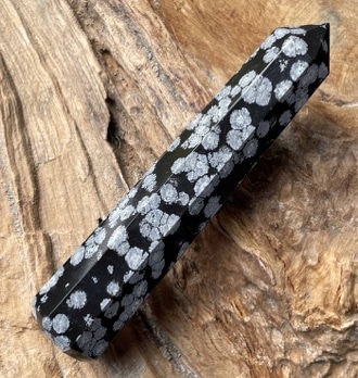 Home / Winkel / Mineralen en edelstenen obelisk / Sneeuwvlok Obsidiaan obelisk in zakje- 90-110mm